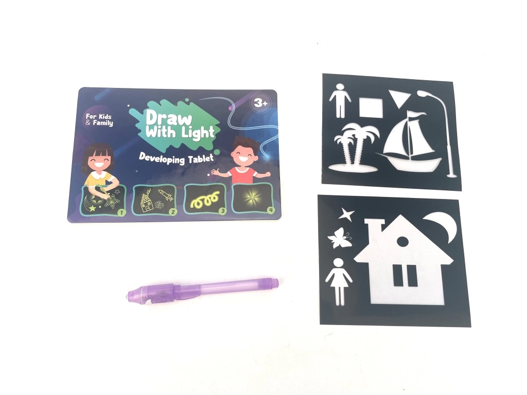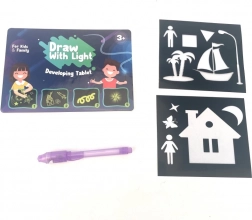 Ta inovativna risalna tabla otrokom prinaša nov način ustvarjanja – risanje s svetlobo brez črnila in papirja. Igra je tako čista, varna in zabavna, hkrati pa spodbuja fino motoriko, kreativnost in domišljijo. Dovolj je, da ugasnete luči in opazujete, kako risbe na tabli čarobno zažarijo.