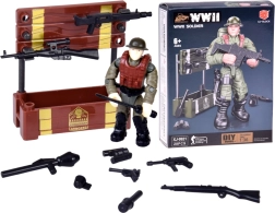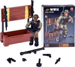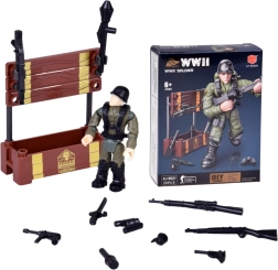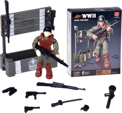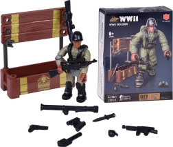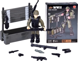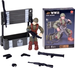 Sestavite realistično figurico vojaka iz obdobja 2. svetovne vojne iz 28 delov. Gradbeni komplet je odličen za ljubitelje militarije, zgodovine in gradbenih kompletov. Končana figurica ima premične okončine, vrtljivo glavo in trup, in zaradi podrobne izdelave izgleda verodostojno in avtentično. Priloženi so tudi dodatki kot so zaboj, orožje in granate.