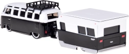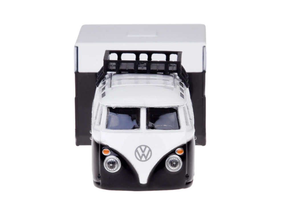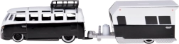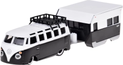 Set združuje ikonični mikrobus VOLKSWAGEN in podrobno izdelano počitniško prikolico. Idealno za zbirko in domišljijsko igro.