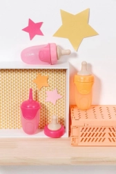 BABY born steklenička s pokrovčkom je idealni dodatek za vašo punčko. Na voljo so tri barvne možnosti - rdeči čaj, rožnati koktajl in rumeni sok, da bo igra polna zabave in kreativnosti.