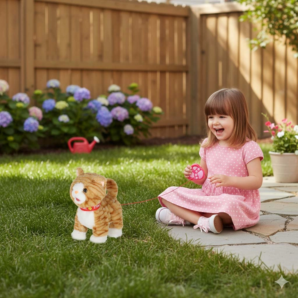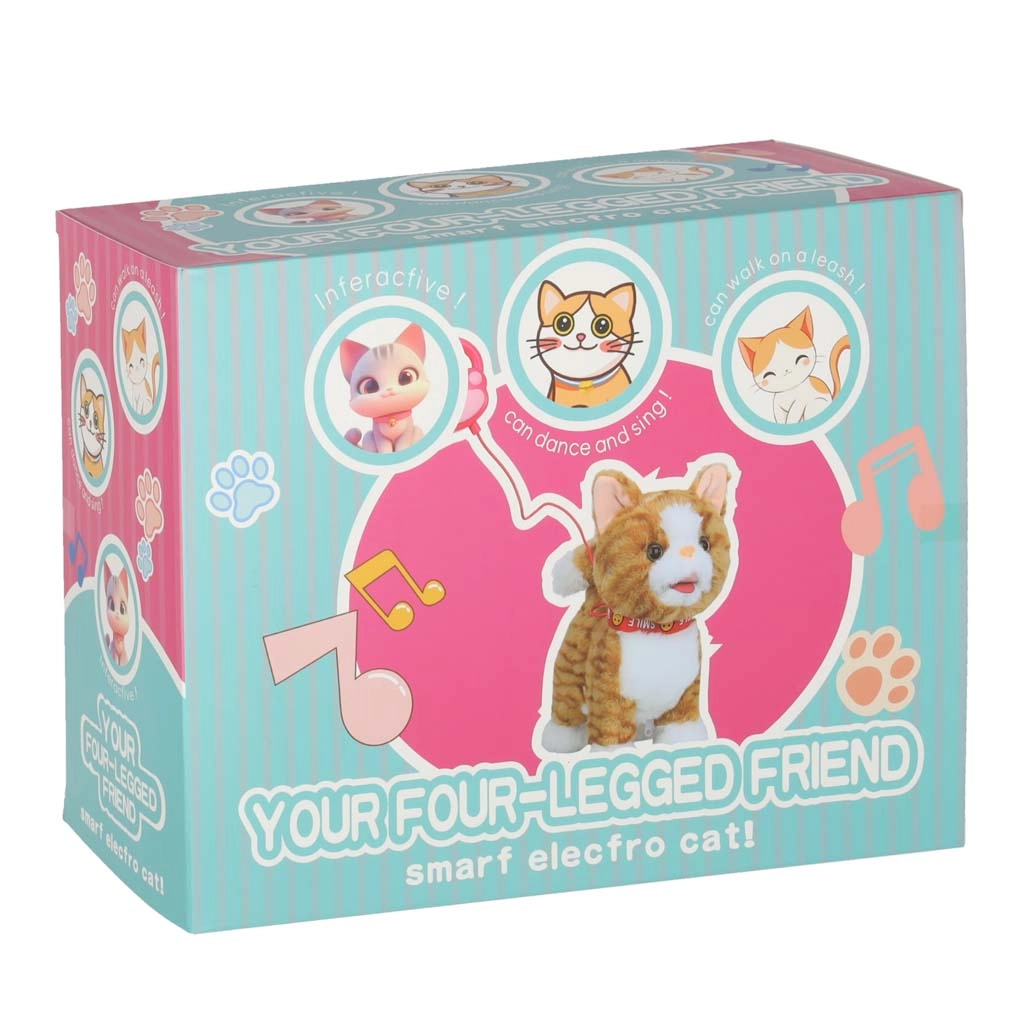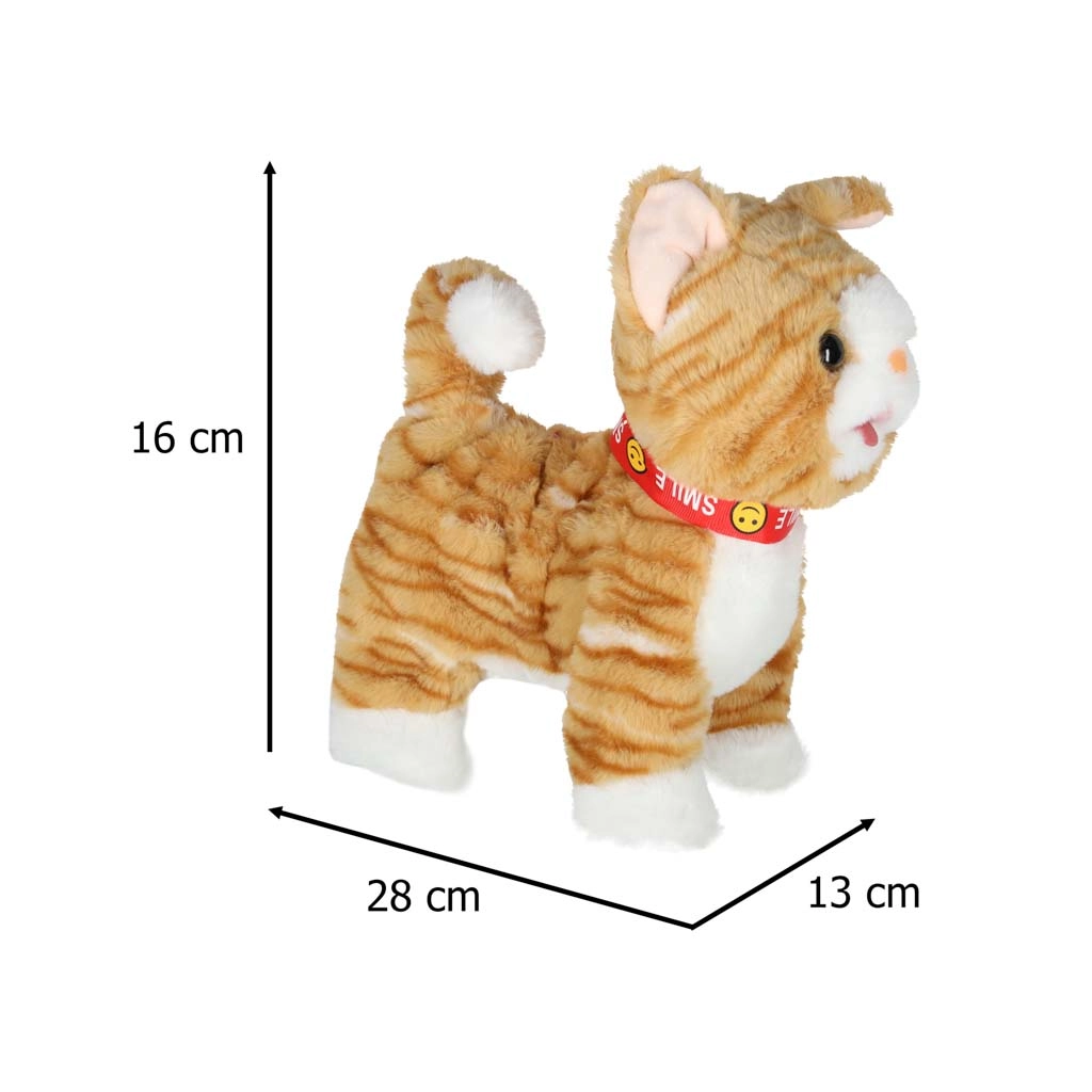 Iščete cartljivo igračo, ki hkrati spodbuja domišljijo in aktivno igro? Ta interaktivna mačka ima mehko, prijetno kosmato telo, pisano ovratnico in priročen ročni upravljalnik v obliki tačke. Ob pritisku gumba se mačka začne premikati, hojo pa spremljajo zvoki in melodije.