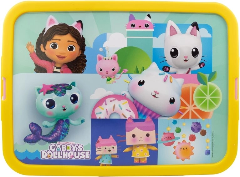 Ljubka in praktična shranjevalna škatla s prostornino 23 l z motivom Gabičina čarobna hiša pomaga ohranjati red v otroški sobi in gospodinjstvu. Ima vzdržljivo plastično izvedbo, zaprtljiv snemljiv pokrov in je idealna za igrače, kocke in drobnarije.