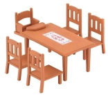 Miza stoji na čvrsti kovinski konstrukciji s prašnim premazom in ima ploščo iz MDF, ki je enostavna za vzdrževanje. Stoli z ergonomskimi naslonjali in širokimi sedišči nudijo udobje tudi pri daljšem sedenju. Praktična prednost je možnost potiska stolov pod mizo, kar prihrani prostor in ohranja jedilni kotiček urejen.