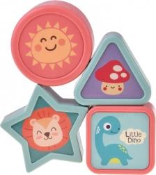 Reliefni motivi na kockah pomagajo otrokom spoznavati barve, oblike, živalice, črke in številke. Idealno za prve poskuse razvrščanja, štetja in razvoj besedišča.