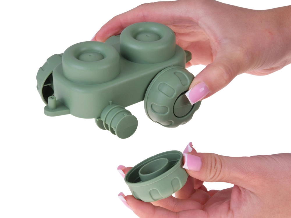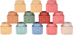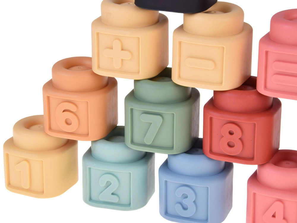 Nežen, stisljiv in netoksičen material odlično leži v roki in je prijazen do dlesni – kocke lahko služijo tudi kot grizalo. Zaobljeni robovi povečujejo varnost pri igri.