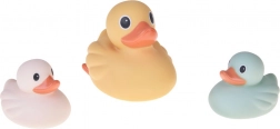 Račke in plavajoči elementi popestrijo vsako kopel. Ob stisku oddajajo nežen zvok, ki spodbuja čute in ohranja otrokovo pozornost.