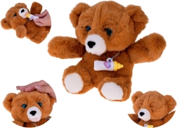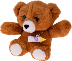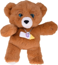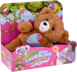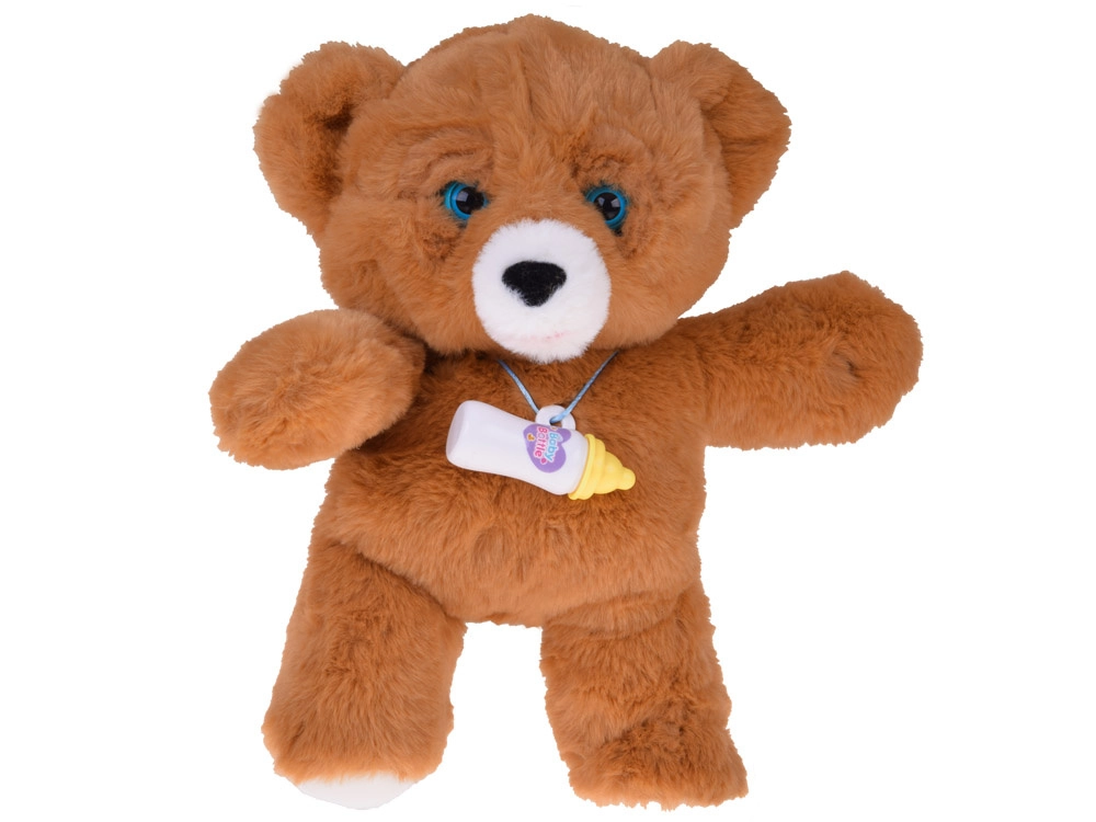 Interaktivni medvedek je izdelan iz mehkega in žametnega pliša v rjavem odtenku ter je idealen za crkljanje in umirjanje pred spanjem. Priložena je steklenička za hranjenje, s katero se otrok uči skrbi, odzivanja na potrebe in razvija empatijo. Realistične premikajoče se oči, ki se zapirajo in odpirajo, igri dodajo avtentičnost.