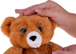 Po božanju po glavici se medvedek smeje, brunda, včasih zajoka in zna pošiljati poljubčke – otroci tako spoznavajo različna čustva.