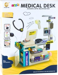 Odkrijte celovit otroški zdravniški in zobozdravniški set, ki prinaša avtentično izkušnjo ordinacije. Premišljena zasnova s mizico s policami in predali, imitacijo monitorja, zdravniško svetilko in EKG-panelom podpira ustvarjalne prizore in učenje skozi igro. Realistični dodatki, vključno s stetoskopom z zvokom in termometrom z osvetlitvijo, igri dodajo prepričljivost.