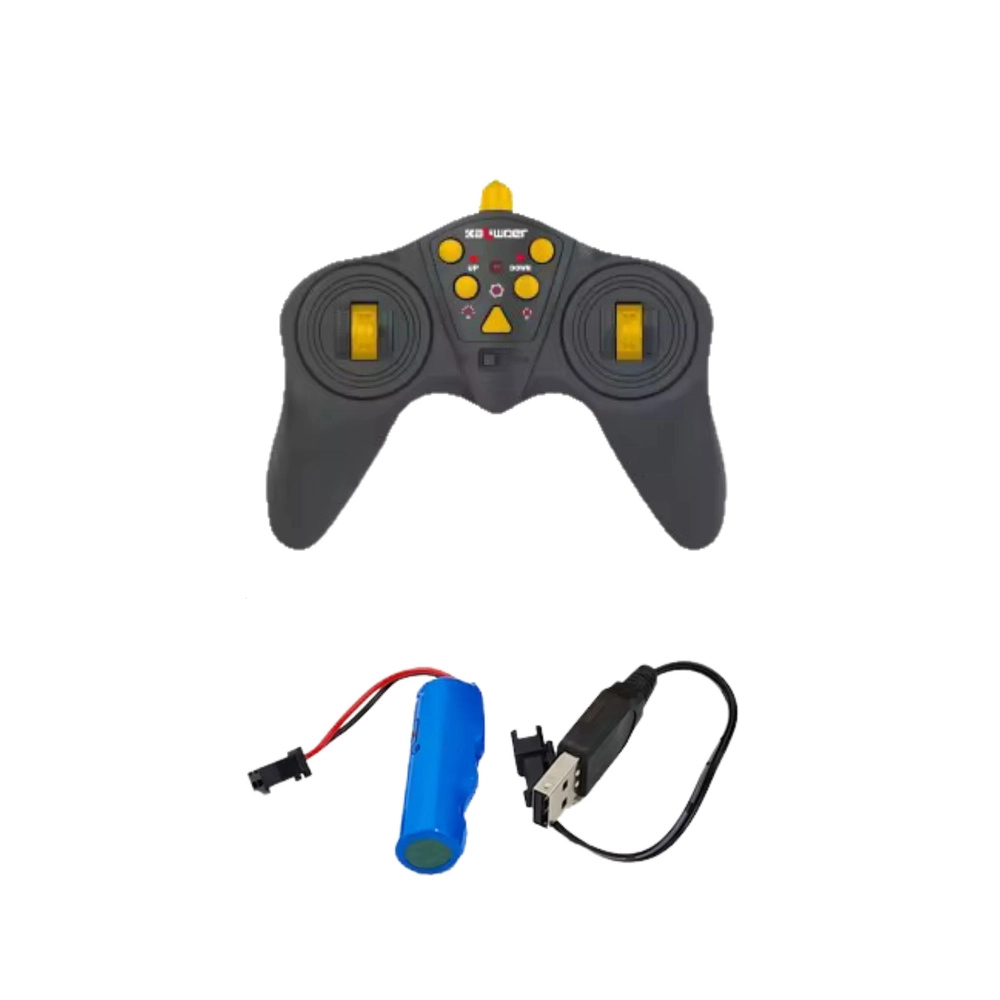 V paketu najdete dvo-joystick krmilnik, polnilni akumulator 3,7 V in USB kabel – le vstavite baterije AA v krmilnik in se odpeljite.
