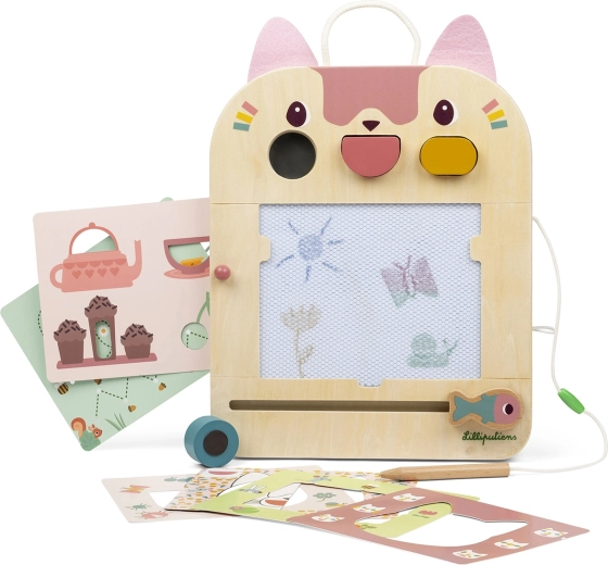 Čarobna tablica mucka Jeanne prinaša otrokom veselje do ustvarjanja brez nereda. Zaradi večbarvnega ozadja, žigov in aktivnosti otroci urijo domišljijo, koordinacijo oko–roka ter se učijo prepoznavati oblike in barve. Praktčno shranjevanje kartic in pritrjen svinčnik zagotavljata, da se nič ne izgubi in da se zabava lahko nadaljuje kadarkoli.