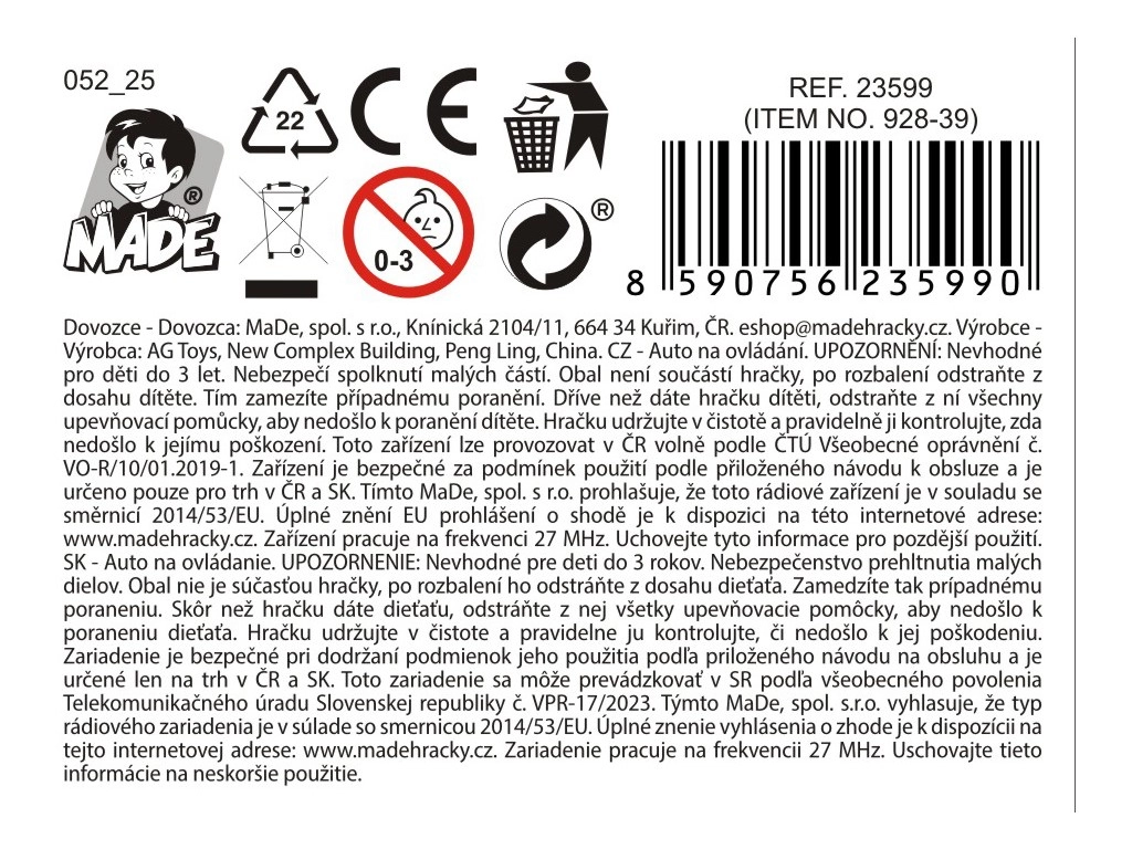 Ergonomski daljinski upravljalnik lepo sede v majhno roko in omogoča enostavno usmerjanje ter nastavitev hitrosti vožnje.