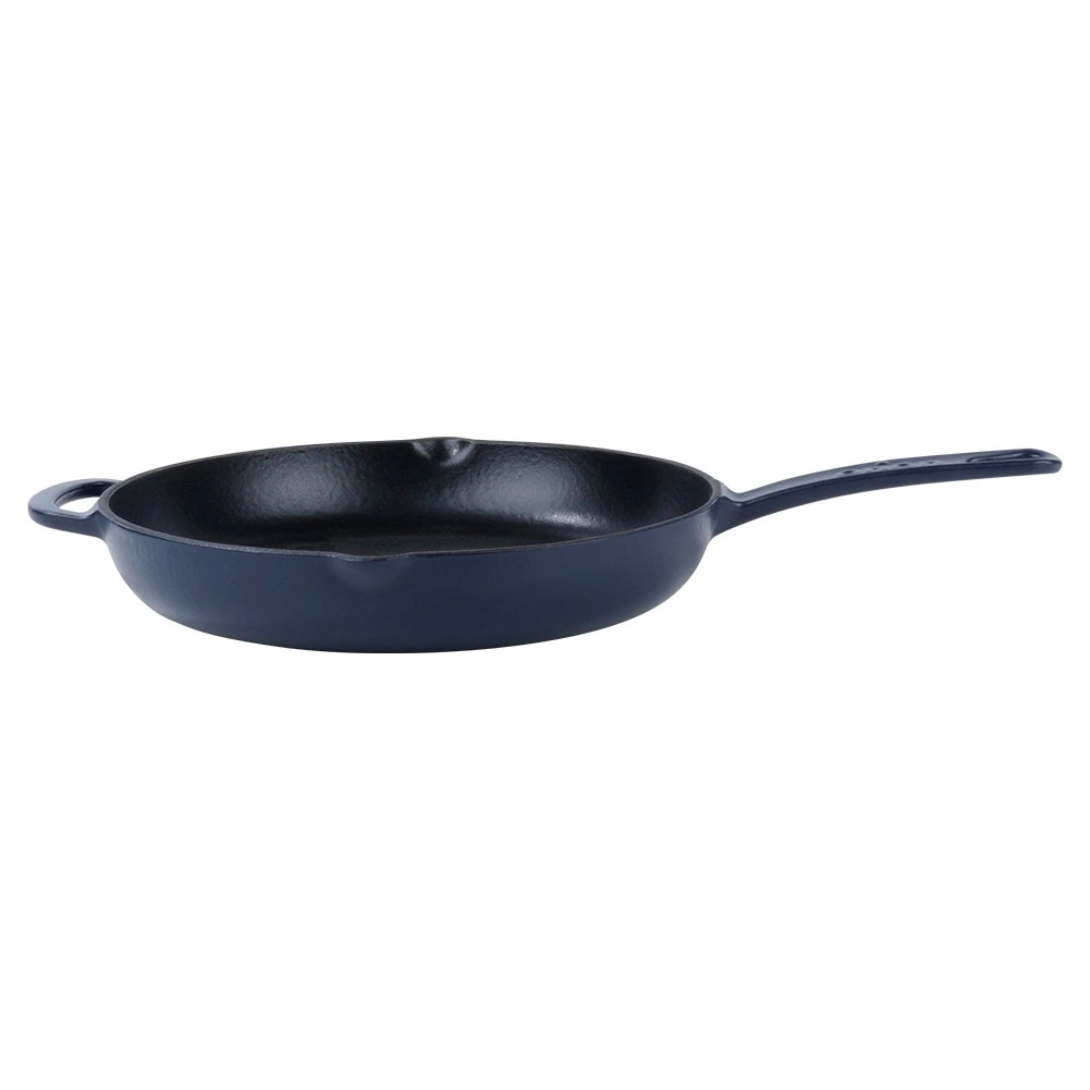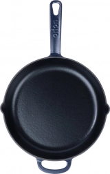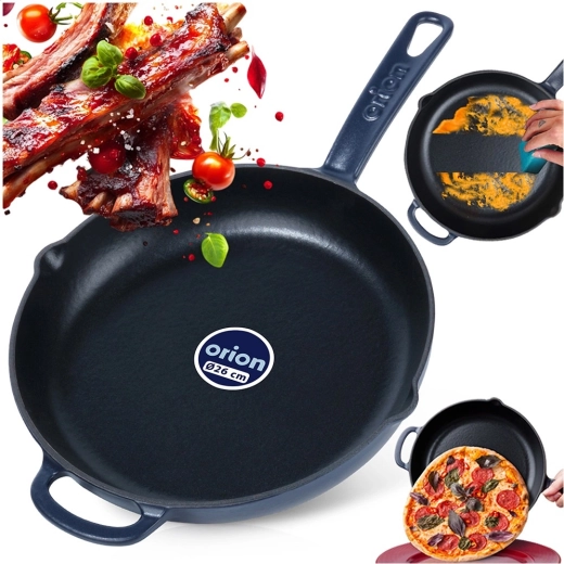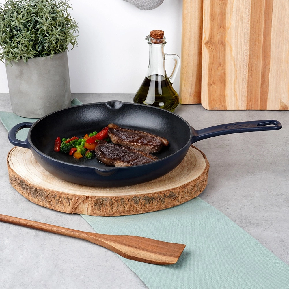 Ta okrogla emajlirana litoželezna ponev 26 cm je idealna za cvrtje, praženje, pečenje in gratiniranje. Masivno lito železo se segreva enakomerno in dolgo ohranja visoko temperaturo, zaradi česar dosežete popolno zapečenost mesa, zelenjave in krompirja. Zunanji granatno modri emajl ponvi doda eleganten videz in olajša vzdrževanje.