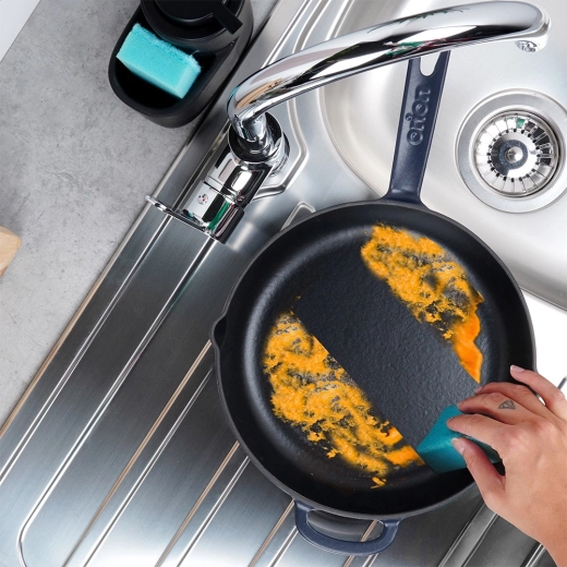 Odporen emajl izgleda odlično, olajša vzdrževanje in pomaga preprečevati prijemanje. Primerno tudi za pomivalni stroj (priporočeno nežno ročno pomivanje).