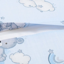 Prevleka iz 100% bombaža je prijetna na dotik in dobro zračna. Zaradi zadrge jo preprosto snamete in operete, kar zagotavlja higieno in enostavno vzdrževanje. Pritrdilni trakovi držijo podstavek trdno na mestu, zato otrok sedi stabilno in varno.