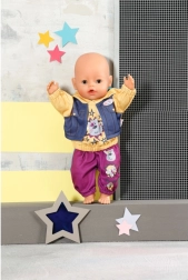 Obleka je zasnovana za punčke BABY born 43 cm, zlahka se obleče in sleče ter je izdelana iz kakovostnih materialov za vsakodnevno igranje. Priložen je tudi rožnat obešalnik za pregledno shranjevanje v punčini omarici.
