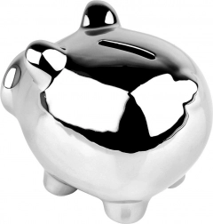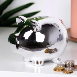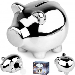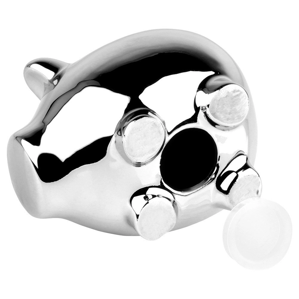 Stilska srebrna hranilnica v obliki pujse je idealna za shranjevanje kovancev in bankovcev. Bleščeča zrcalna izvedba doda vsakemu interierju moderen pridih in se odlično ujema z elegantnim glamour slogom. Spodnja odprtina z zamaškom omogoča udoben dostop do prihrankov brez potrebe po razbitju hranilnice.