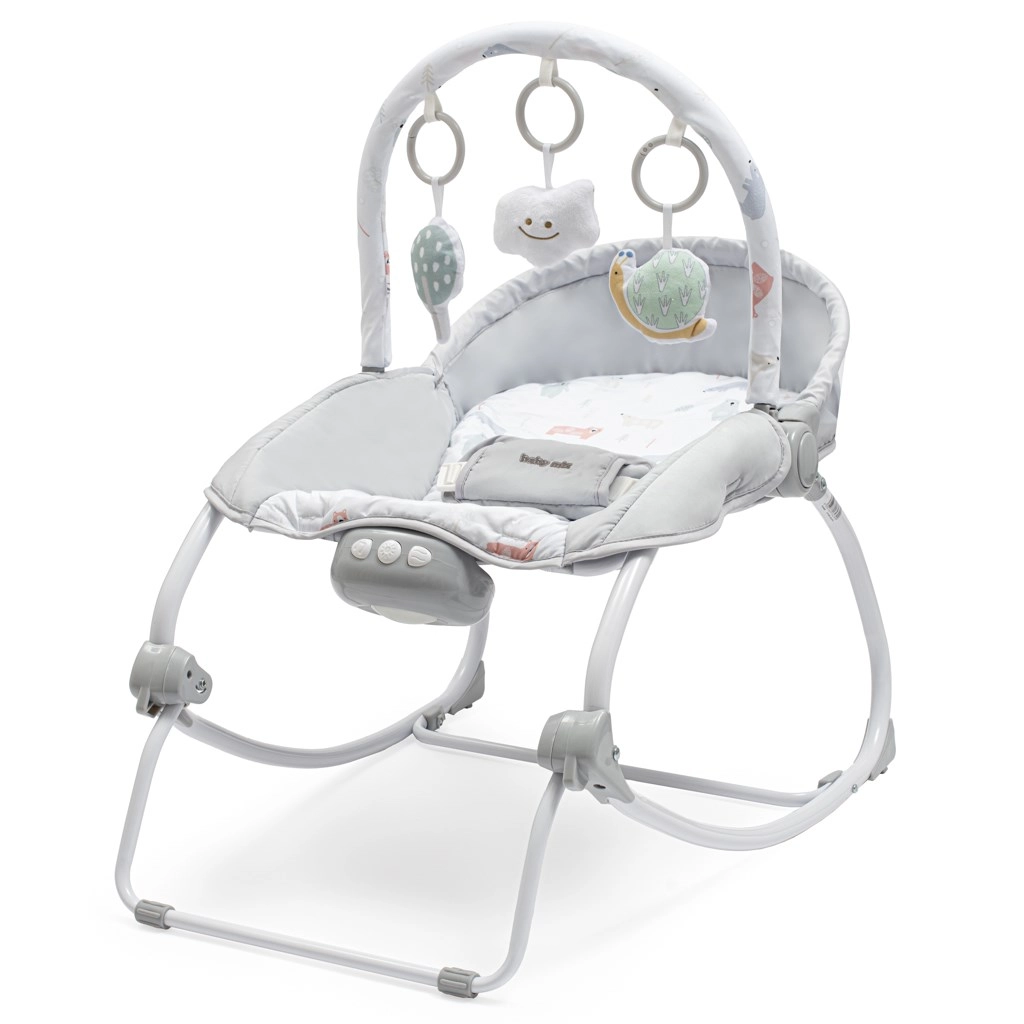 Univerzalen pomočnik za vsak dom: ležalnik BABY MIX Polžek boste uporabljali od prvih dni dojenčkovega življenja pa vse do malčkov. Ponuja nežno guganje z možnostjo blokade v fiksni položaj, zato je primeren tako za pomiritev in spanje kot za hranjenje ali igro. Vgrajena enota z zvoki, svetlobo in vibracijami pomaga ustvariti prijetno in pomirjujoče okolje.