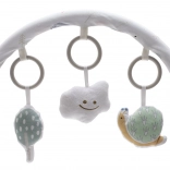 Odstranljiv lok s tremi mehkimi igračami spodbuja koordinacijo in razvoj čutov. Enostavno ga odstranite za hranjenje ali spanje.