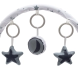 Odstranljiv igralni lok z dvema zvezdicama in polmesecem podpira koordinacijo oči in rok ter radovedno raziskovanje.