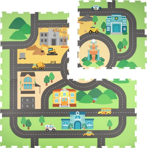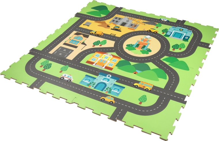 Odkrijte zabavno in varno penasto podlogo HUMBI z motivom mestnih ulic. Set 4 velikih delov ustvari površino približno 120 × 120 cm in ponuja mehko, izolacijsko in protizdrsno podlago za igro. Otroci lahko sestavijo lastno mestece in ceste, razvijajo ustvarjalnost in fino motoriko. Izdelano iz trajnostne EVA pene brez ftalatov, formamida, BPA in PVC.