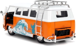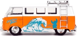 Model v merilu 1:24 ponuja odpirajoče se dele (vrata), podrobno notranjost, kromirane dodatke in gladko vrtenje koles za enostavno premikanje po površini. Del kompleta je tudi figurica STITCH višine približno 4 cm, ki odlično dopolnjuje tematski potisk »Catching Waves«.