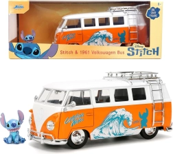 Zbirateljski set za oboževalce DISNEY: podroben kovinski model Volkswagen T1 v merilu 1:24 in figurica STITCH 4 cm. Model iz tlakovane zlitine ima odpirajoča se vrata, realistične podrobnosti in gladko vozna kolesa. Idealno za razstavljanje in igro, odlično darilo za otroke od 8 let in zbiratelje retro avtomobilov.