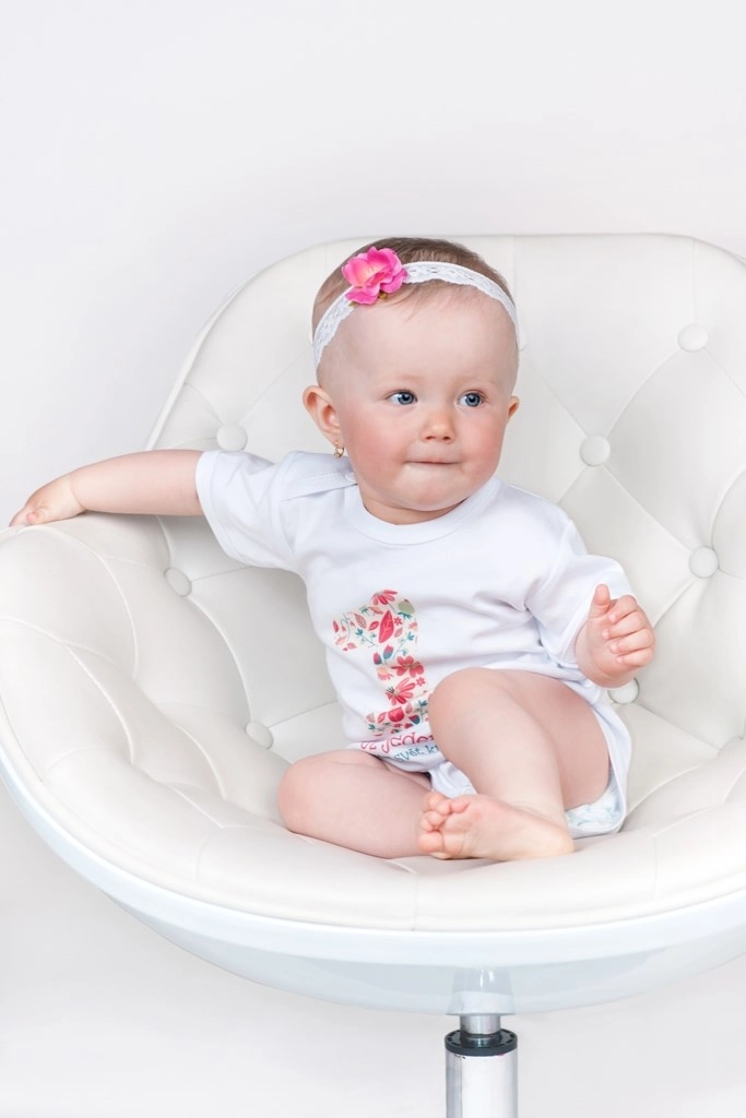 Praznujte prvi rojstni dan svojega malčka z izvirnim in udobnim bodijem New Baby. Mehak bombažen material zagotavlja prijeten občutek na koži ves dan, kakovosten potisk z veliko enico in baloni pa doda videzu prazničen pridih. Zaradi praktičnega kroja je bodi odlična izbira za vsakodnevno nošenje in fotografiranje.