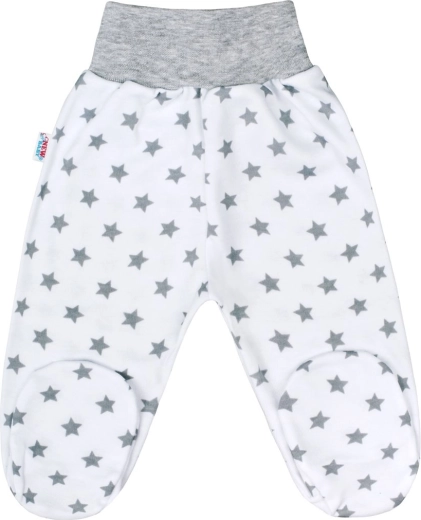 Te polhlače so zasnovane z mislijo na udobje in varnost novorojenčka. Enobarvna siva zasnova z nežnimi zvezdicami se zlahka kombinira z ostalo opremo in deluje brezčasno. 100% bombaž zagotavlja zračnost in prijeten občutek na koži ves dan.