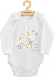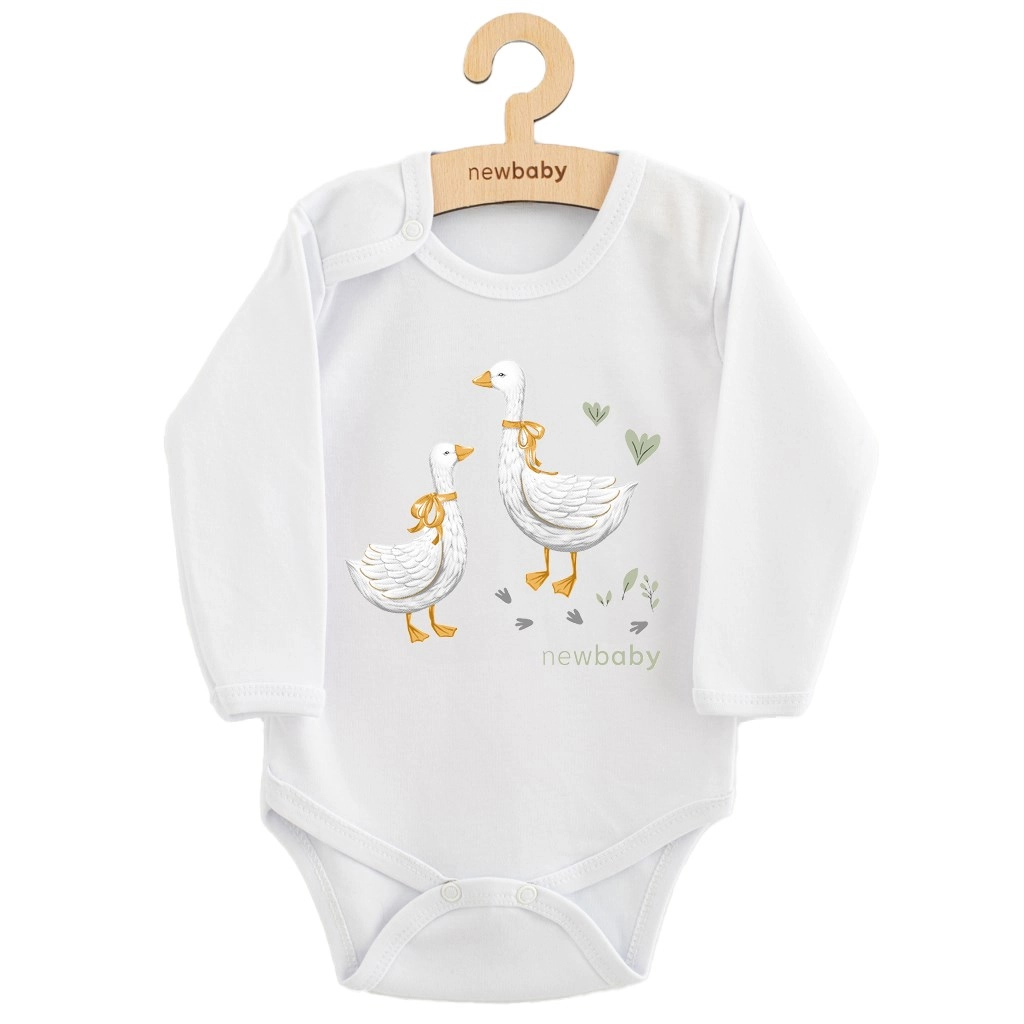 Ljubek in udoben otroški bodi z motivom gosičk znamke NEW BABY iz mehkega bombaža. Zahvaljujoč praktičnemu zapenjanju s pritiskači je previjanje hitro in preprosto. 100 % bombaž je mehek, zračen in nežen do občutljive kože. Barve potiska so certificirane za dojenčke, material pa izpolnjuje OEKO-TEX STANDARD 100.