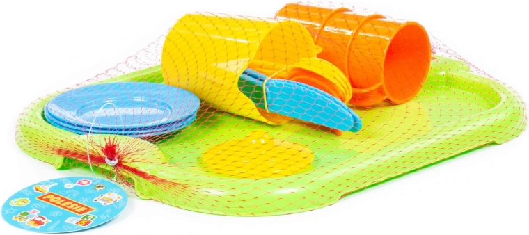 Zeleni servirni pladenj pomaga otrokom prenašati in pospraviti vse dele naenkrat.