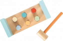 Zabijanje barvnih valjčkov spodbuja natančen prijem, koordinacijo oko–roka in potrpežljivost otrok že v zgodnjem obdobju.