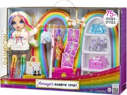 Slog, barve in neskončen navdih – ta omara s punčko RAINBOW HIGH je idealna izbira za otroke, ki imajo radi modo in ustvarjalno igro. V komplet so vključena skrbno zasnovana oblačila, torbice, čevlji in obešalniki, zato lahko zlahka ustvariš desetine različnih kombinacij ter jih predstaviš na garderobnem stojalu ali pospraviš na police.