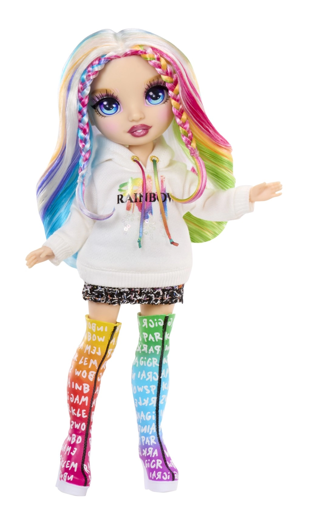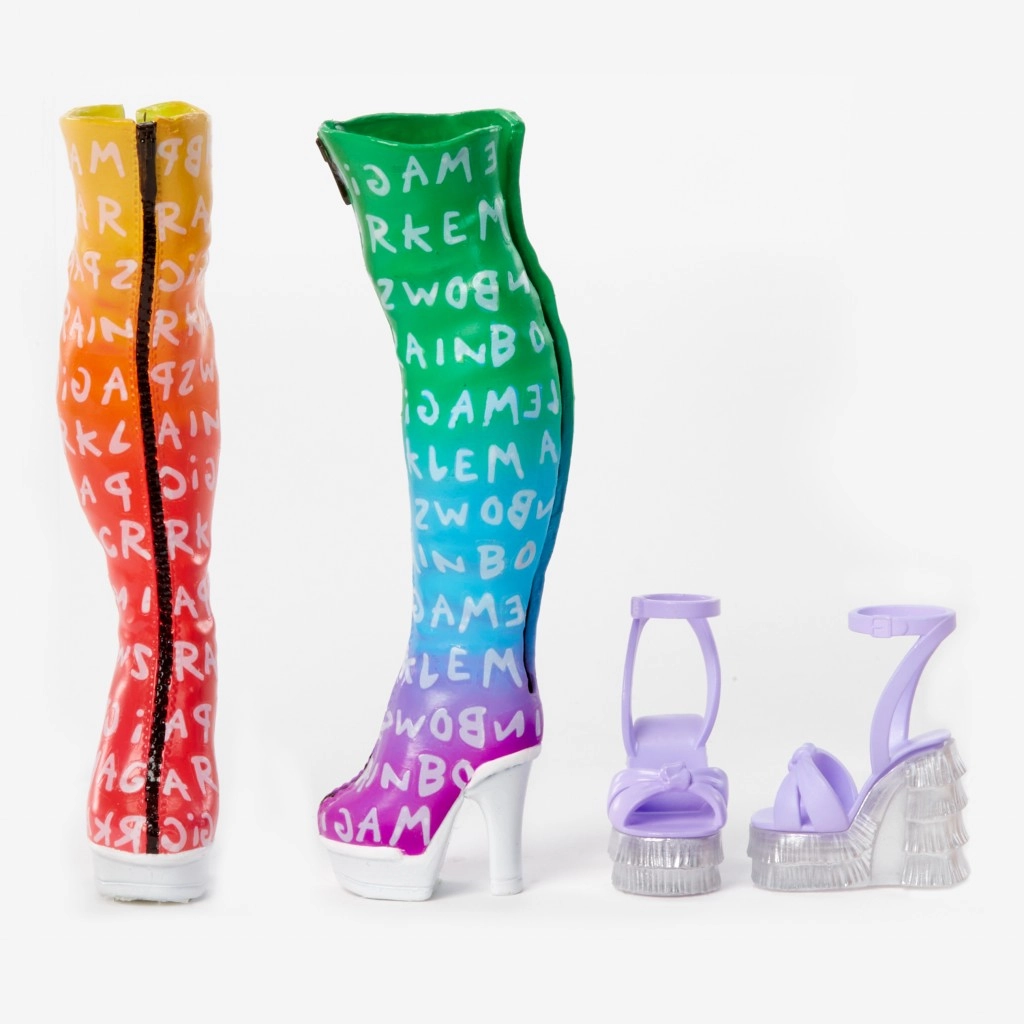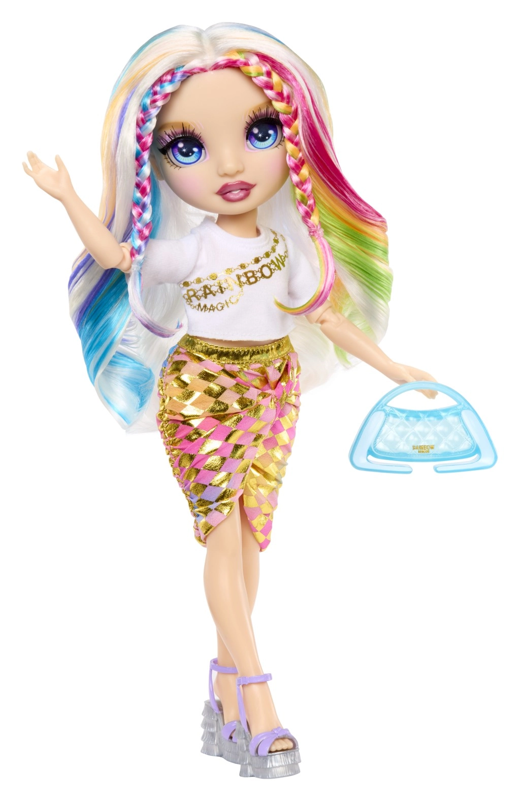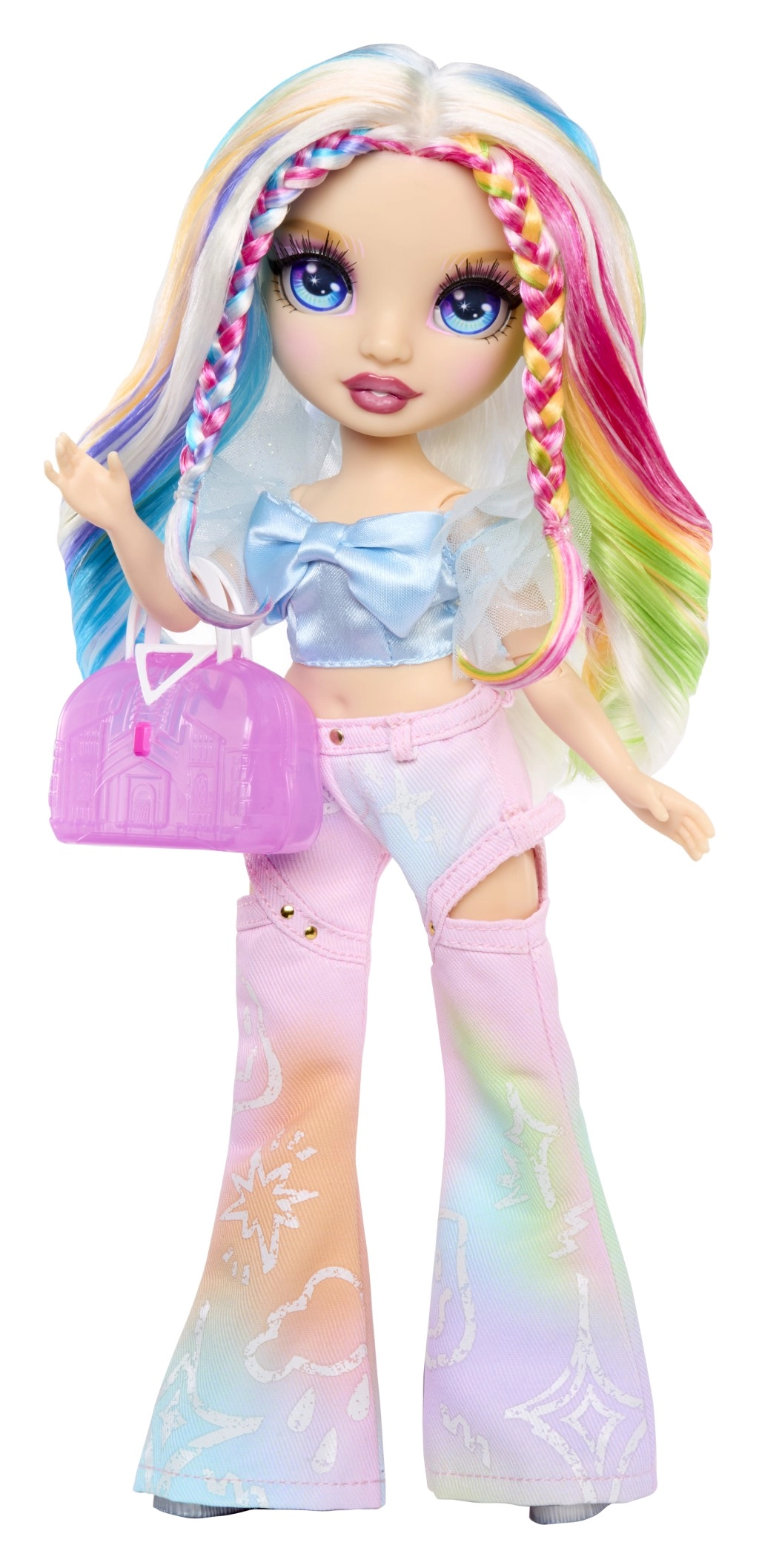 Mavrični detajli in kakovostna izdelava zagotavljajo, da bo vsak outfit videti odlično tako na razstavnem mestu kot pri igri. Zglobna punčka z dolgimi mavričnimi lasmi se zlahka postavlja v poze, zato je popolna za fotografiranje, modne revije in vsakodnevno zabavo.