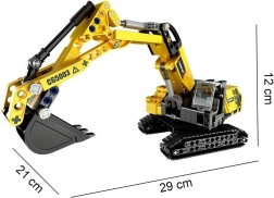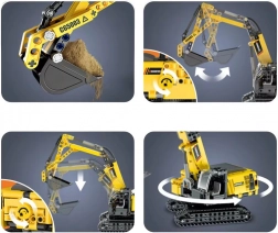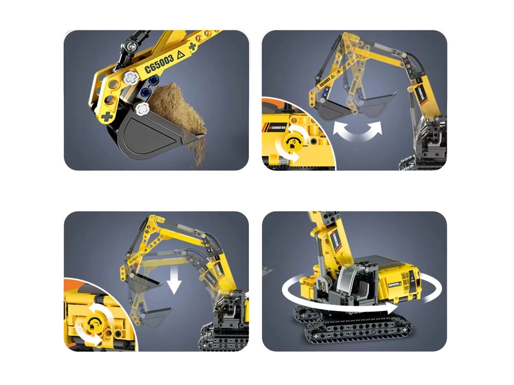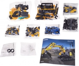 Sestavljanje je zaradi natančno prilegajočih se kosov tekoče, končna konstrukcija pa čvrsta in stabilna. Rumeno‑siva barvna shema in nalepke poudarijo realističen videz. Bager ima funkcionalno roko z možnostjo dviga, premično žlico, kabino z 360° vrtenjem in gosenice za gladko premikanje.