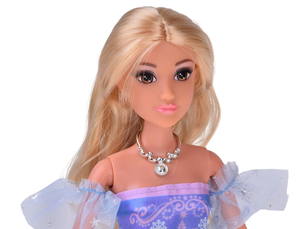 Princesa ima dolge blond lase za česanje, podrobno oblikovano obleko s tilom in pentljo ter dodatke – tiaro in ogrlico. Gibljive okončine olajšajo poziranje in igro.