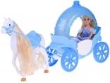 - Lutka princesa, tiara, ogrlica, čevlji; beli konj s sedlom in uzdo; kočija