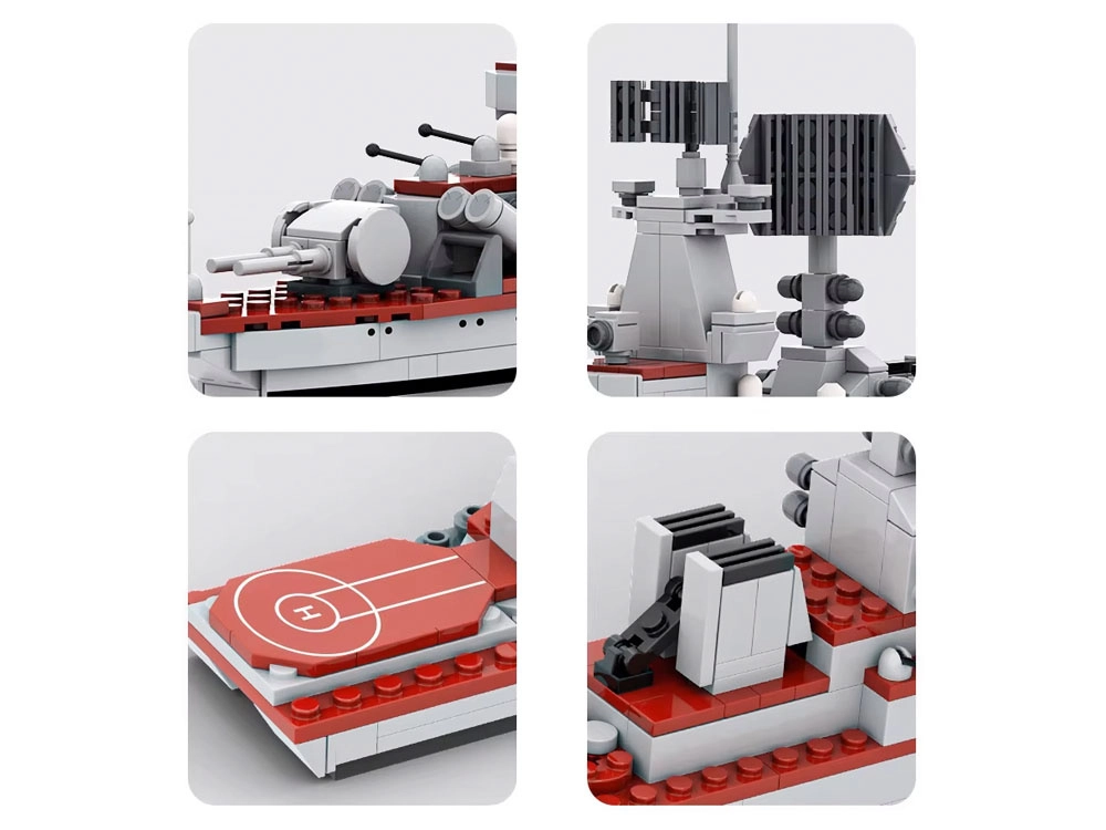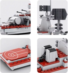 Ta gradbeni set prinaša ure zabave pri sestavljanju in impresiven rezultat na polici. Zahvaljujoč trdno prilegajočim se delom boste ustvarili stabilno konstrukcijo z bogato opremo – od radarjev in topniških stolpov do palubnih nadgradenj. Realistično izvedbo podprejo nalepke v paketu, ki končnemu modelu dodajo avtentičen videz.