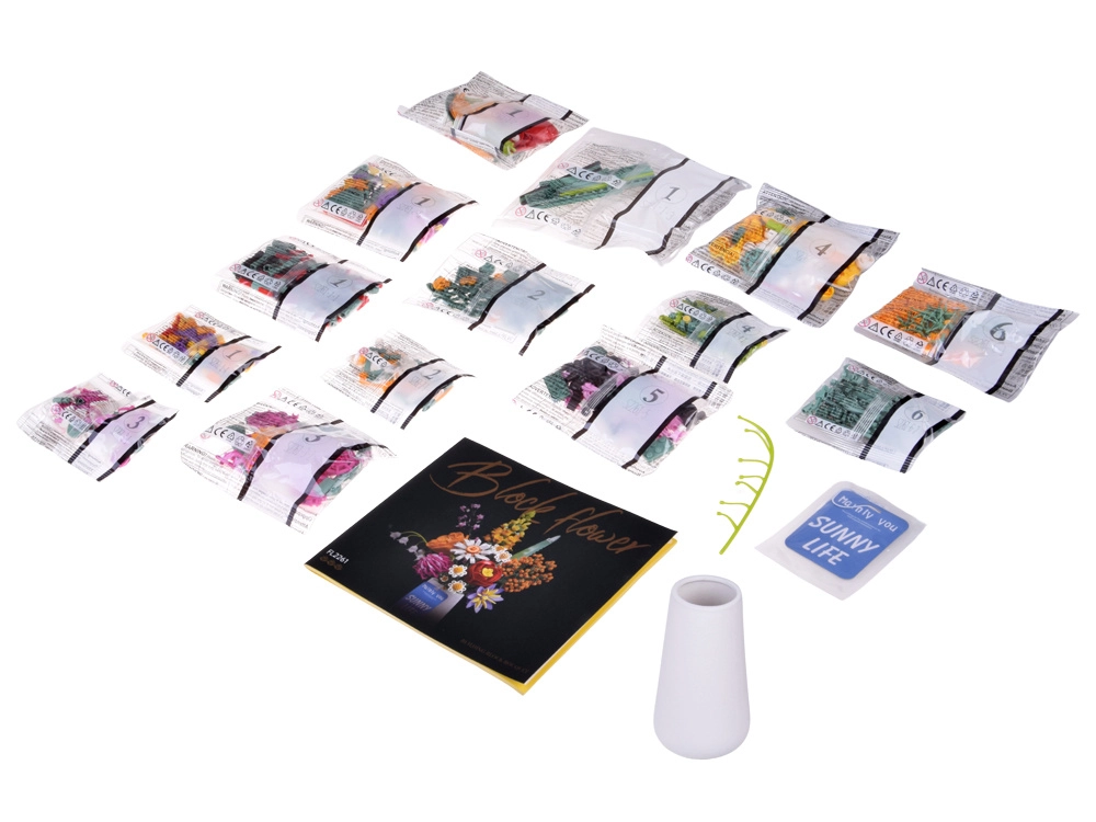 Oštevilčene vrečke in pregleden slikovni priročnik zagotavljajo gladko sestavljanje. Sestavite do 10 vrst cvetov in listov ter ustvarite edinstveno aranžma.