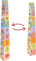 Kocke lahko zlagate druga na drugo v visok stolp ali jih vstavljate eno v drugo za varčno shranjevanje. Idealno za urjenje fine motorike in koordinacije.