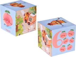 Ustvarjajte neskončne kombinacije: gradite visoke stolpe, sestavljajte poti z vozili, razvrščajte številke in preštevajte sadje. Vsaka kocka je potiskana s pisanimi prizori, ki spodbujajo koordinacijo oko–roka, prostorsko zaznavanje in kreativnost. Z angleškimi napisi si otroci na igriv način osvojijo osnovne besede.