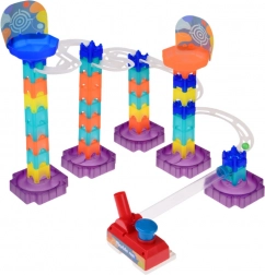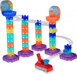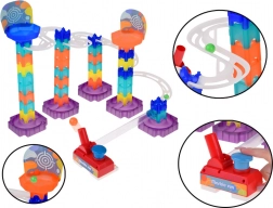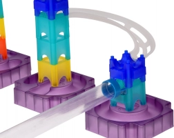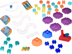 Ta kreativni komplet omogoča prosto kombiniranje modulov in ustvarjanje izvirnih tras. Zahvaljujoč prozornim stezam otroci vidijo gibanje kroglic v realnem času ter si naravno osvojijo principe gravitacije, hitrosti in vzroka in posledice. Robustne baze in zaskočeni spoji zagotavljajo stabilnost in enostavne predelave.