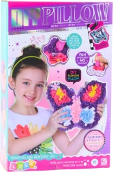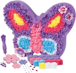 Ta kreativni DIY komplet omogoča otrokom, da izdelajo svojo mehko blazinico v obliki metulja brez uporabe igle ali ostrih orodij. Barvne koščke tekstila preprosto vstavljajo v vnaprej označene odprtine s pomočjo varnega plastičnega orodja in ustvarjajo plastičen 3D vzorec.