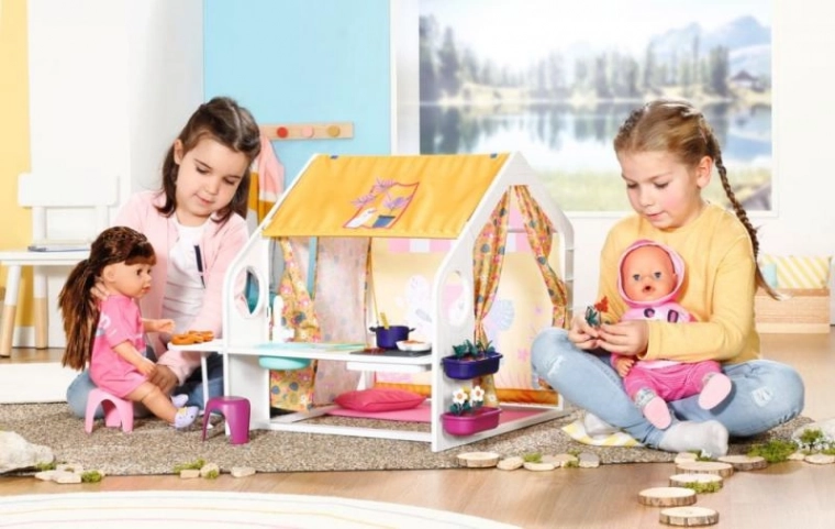 Z barvanimi stenami in podrobnimi dekoracijami hiška otrokom omogoča doživeti razkošno glamping izkušnjo s punčkami BABY born.