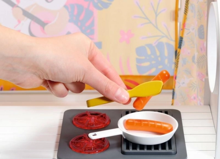 Poleg zabavnega postrežnega dela lahko otroci hiško uporabijo tudi za opazovanje sončnega zahoda ter odlaganje punčk k počitku v spalnem kotičku z rožnatimi dodatki.