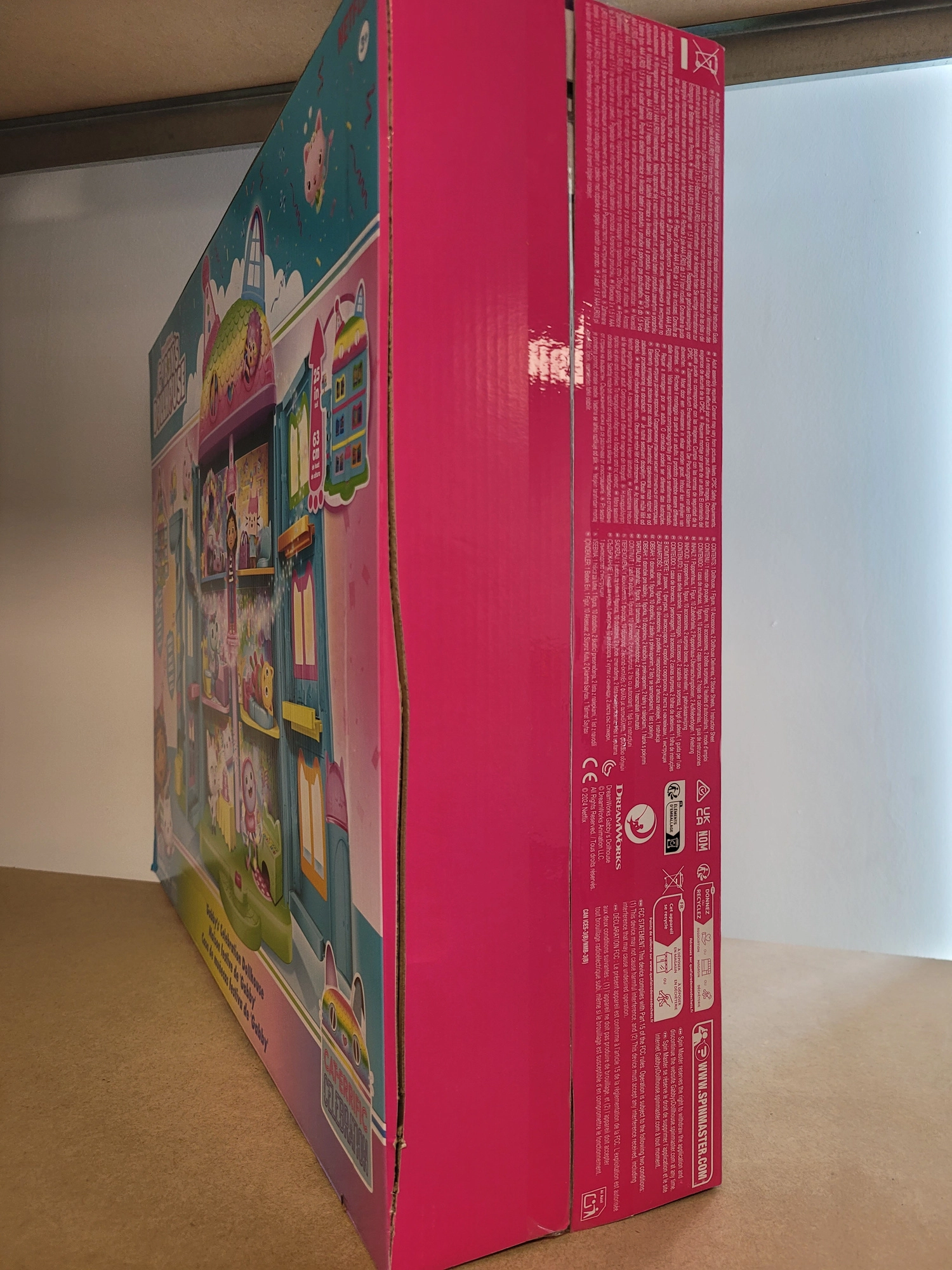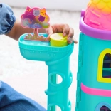 Odkrijte čarobni svet serije Gabin mačji domek z veliko mavrično hišico, visoko približno 60 cm. V kompletu so punčka Gabi, pohištvo in 10 tematskih dodatkov, kot sta DJ pult s klavirjem in mačje stranišče. Odprite vrata v 6 sob, uporabite Cat‑A‑Vator za premikanje med nadstropji in uživajte v 6 zvočnih efektih in melodijah iz serije. Različica OUTLET: poškodovana embalaža – izdelek je nov in popoln.