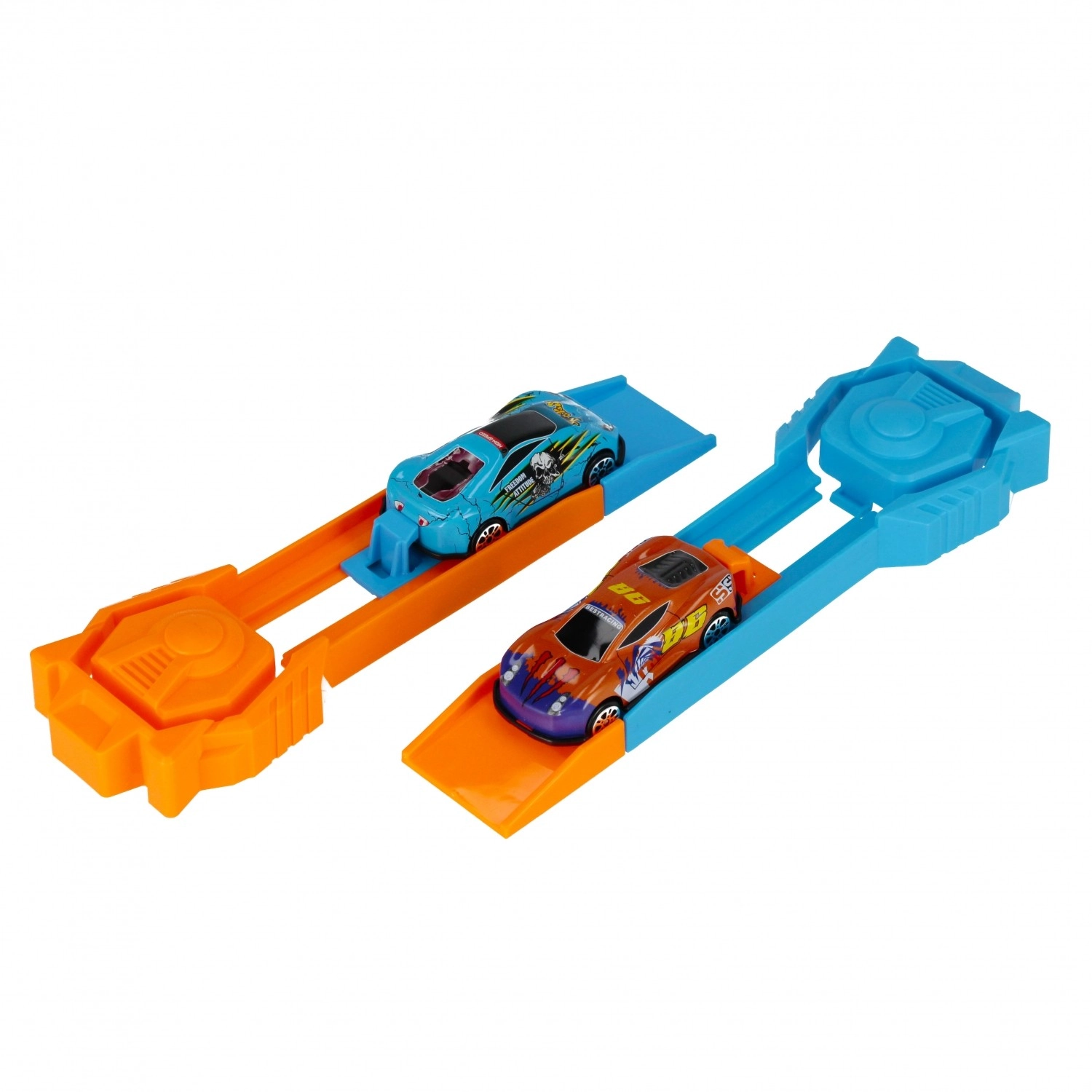 Uživajte v hitri in napeti zabavi s kompaktno zbirko kovinskih avtomobilčkov in izstreljevalniki. Dovolj je pritisk na gumb in avtomobilček poleti kot iz katapulta – idealno za tekmovanja otrok od 3. leta naprej. Odlična izbira za male ljubitelje dirkanja.