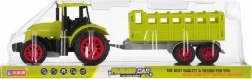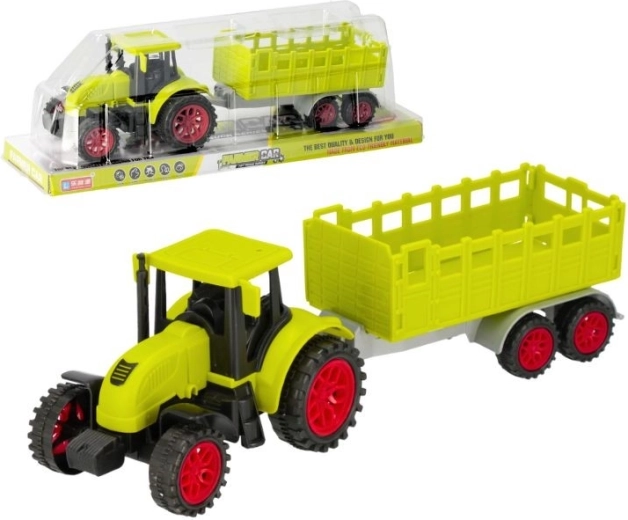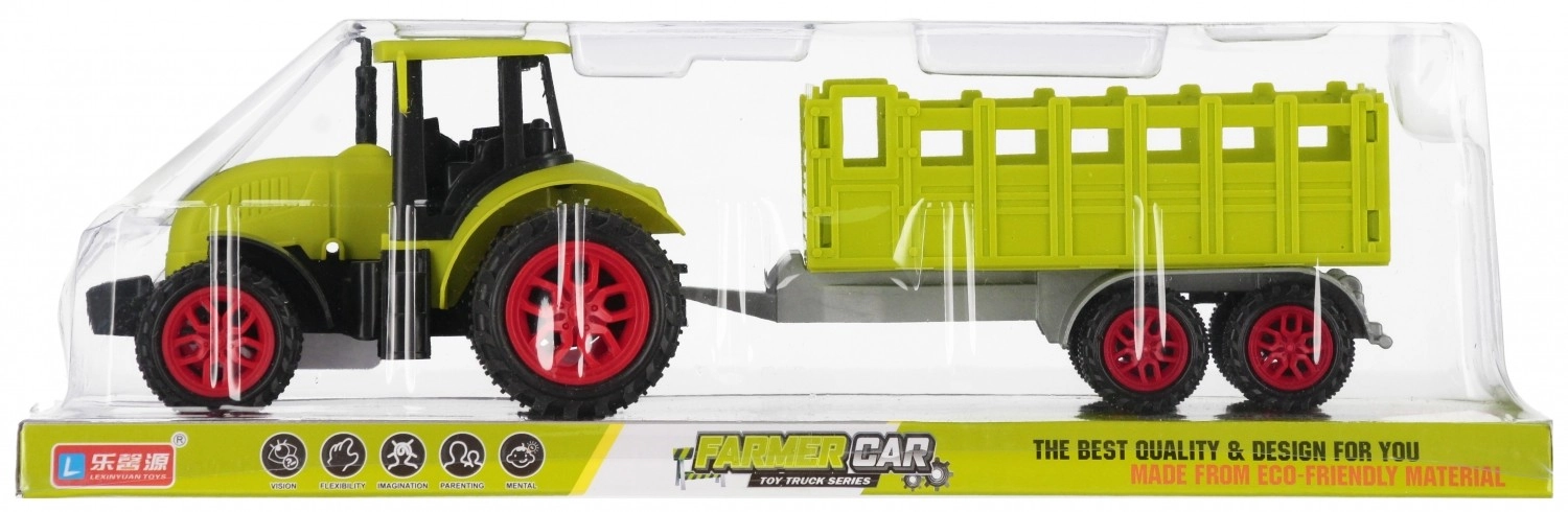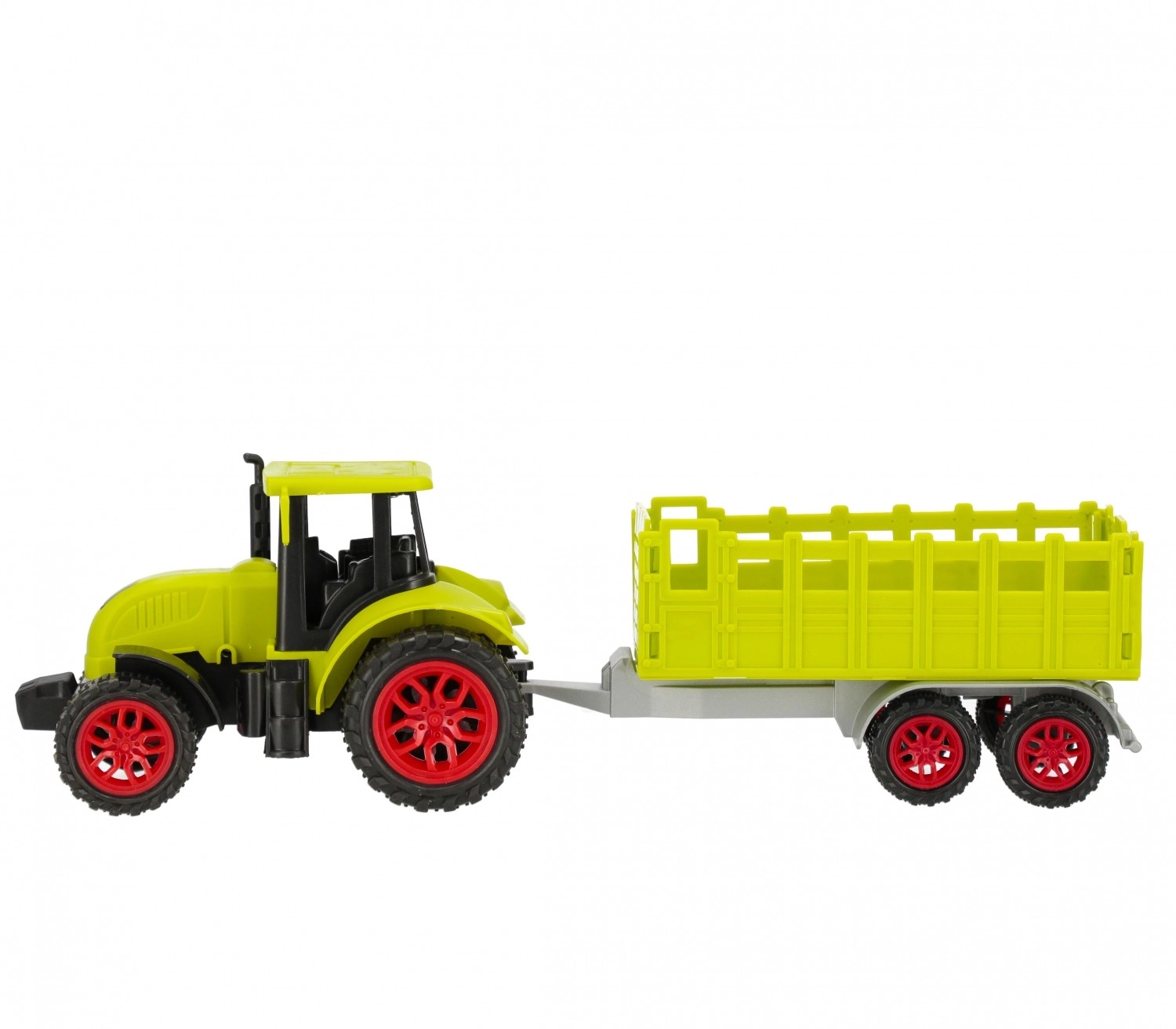 Odkrijte veselje k kmečki igri z robustnim plastičnim traktorjem z odstranljivo prikolico. Zahvaljujoč podrobni izdelavi, prosto vrtečim se kolesom in preprostemu priklopu prikolice otroci zlahka prevažajo kocke, figurice ali drobne zaklade.