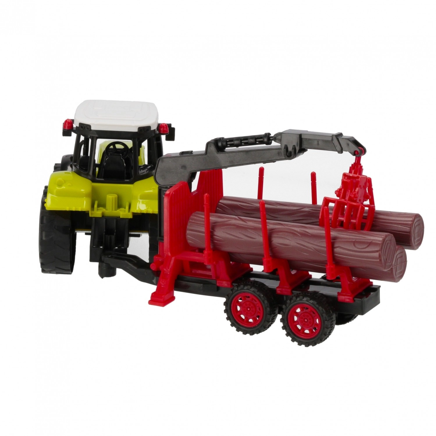 Ta podrobno izdelan traktor z gozdarsko prikolico otrokom omogoča prevažanje »hlodov«, nakladanje in razkladanje s pomočjo premičnega žerjava ter ure ustvarjalne igre. Zahvaljujoč robustni plastiki in trpežnim kolesom je odlična izbira za igro doma in na prostem.