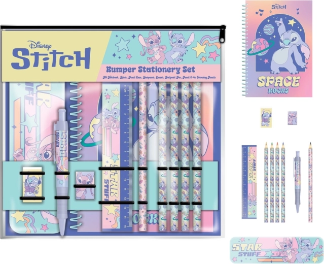 Odkrijte prikupen in praktičen šolski komplet z motivom Lilo in Stitch, ki otrokom polepša vsak šolski dan. Ta velik komplet šolskih potrebščin je idealen kot darilo za mlajše šolarje in ponuja vse potrebno za pisanje, risanje in organizacijo.